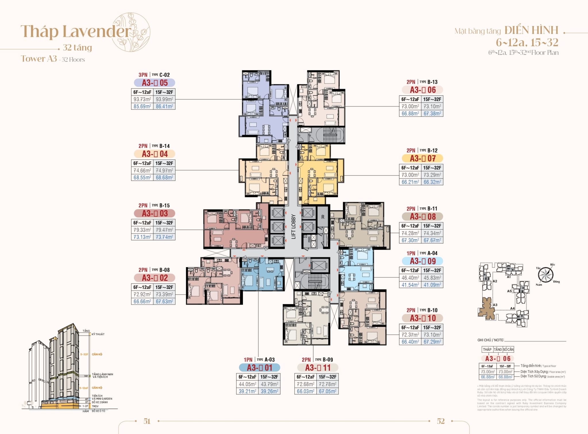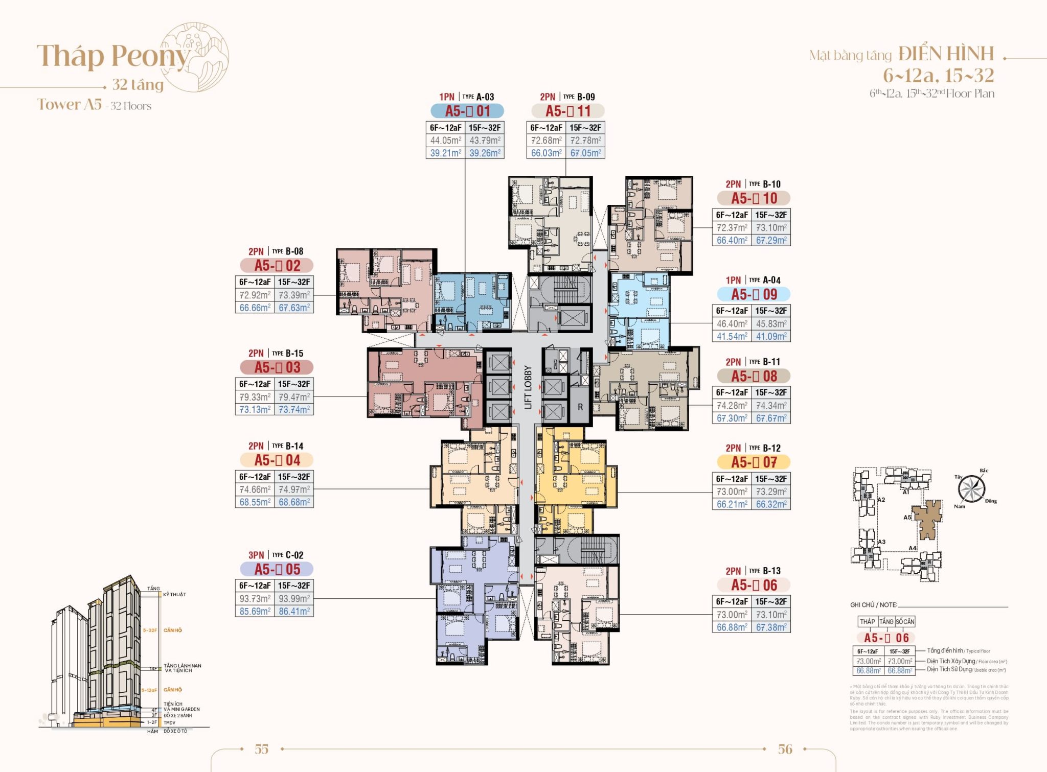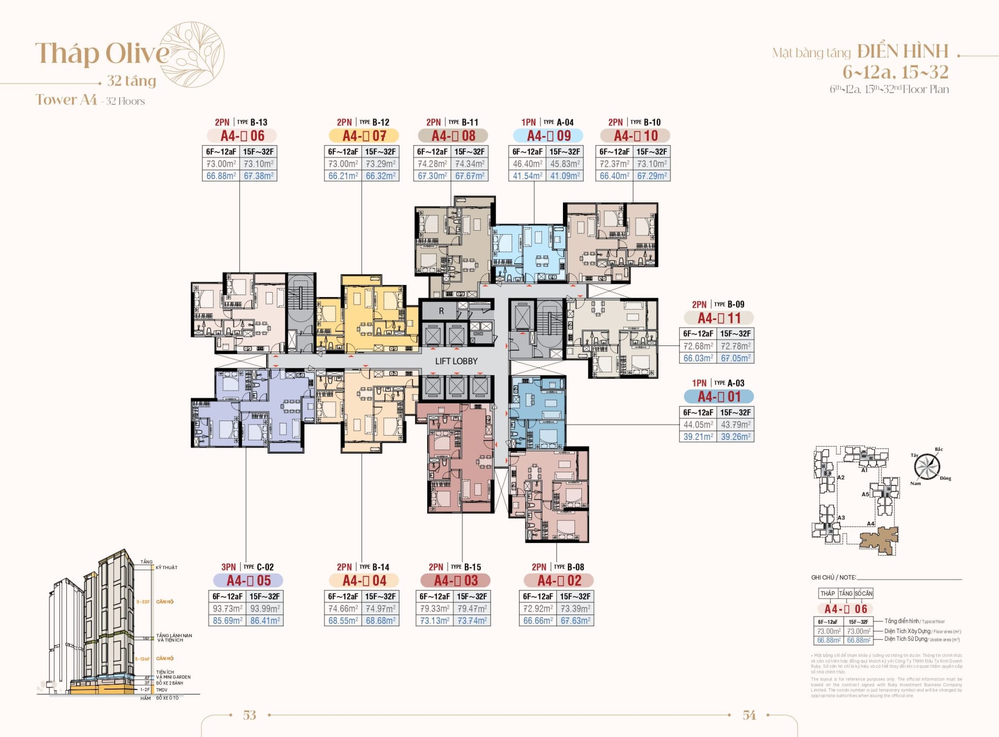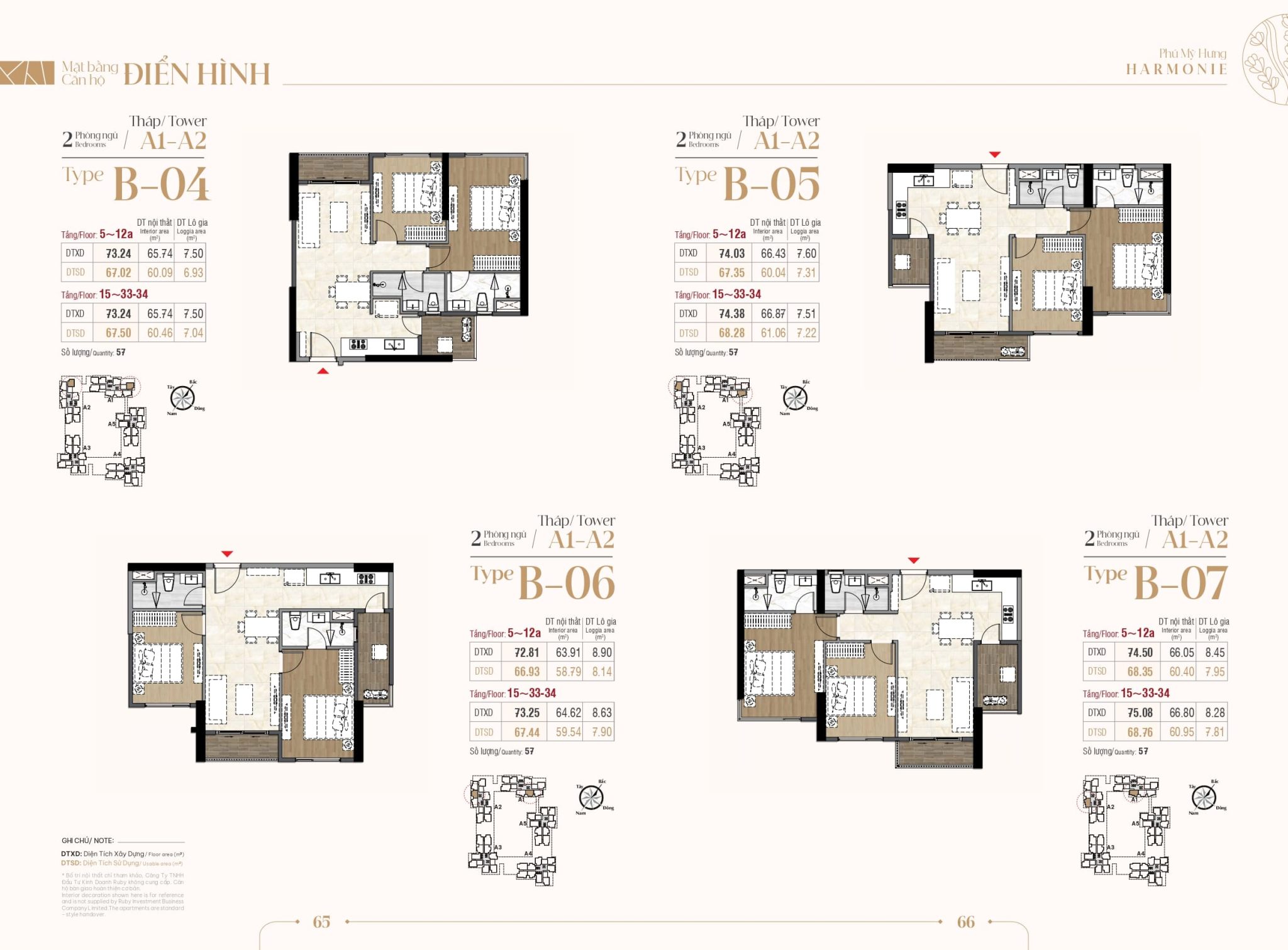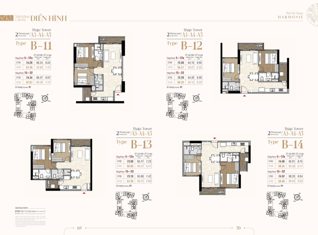 | Căn hộ 2 phòng ngủ | 66 – 73 m² | 50 | 4.x tỷ |