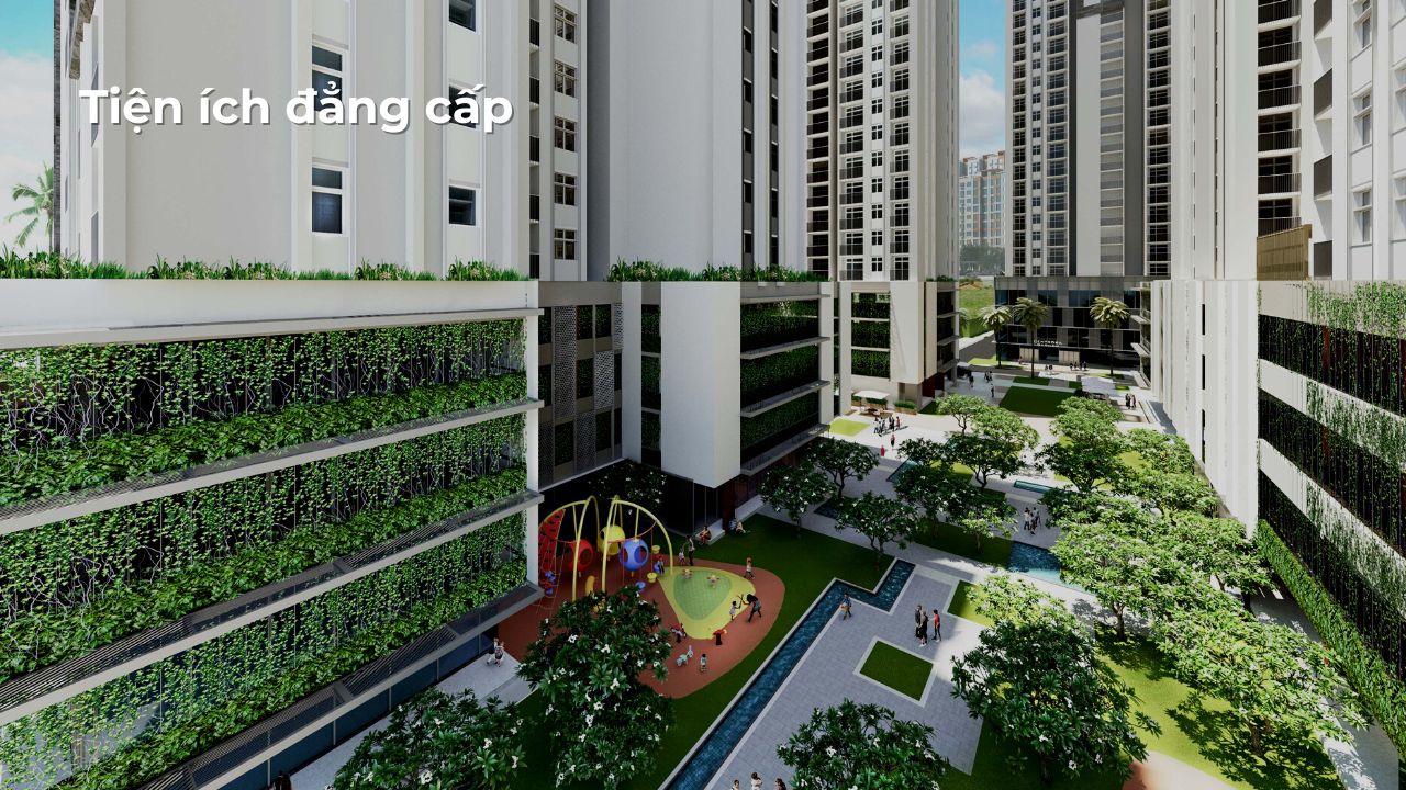 - Khu vui chơi và gắn kết gia đình: Khu vui chơi trẻ em được thiết kế an toàn, mềm mại; sân chơi ngoài trời, khu nướng BBQ, vườn treo tầng cao, phòng sinh hoạt cộng đồng… mang đến không gian tương tác, giải trí cho mọi thành viên trong gia đình.