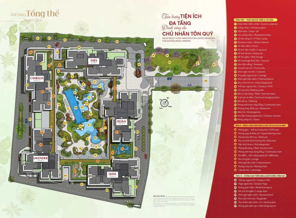 - Không gian sống xanh và nghệ thuật: Hơn 60% diện tích dự án được dành cho cây xanh, mặt nước và cảnh quan, gồm các công viên nội khu, vườn thiền, đường dạo bộ, suối nhân tạo, thác nước, cầu ngắm cảnh… Từng bước chân trong khuôn viên đều mang lại cảm giác an yên, thư thái, gần gũi với thiên nhiên.