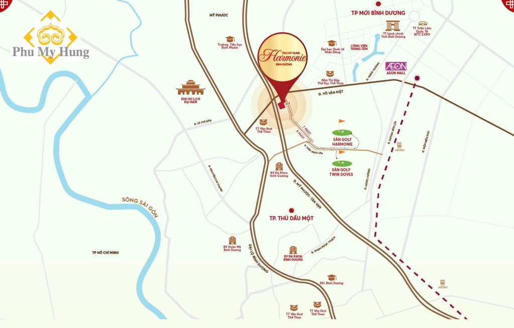 Sở hữu vị trí chiến lược ngay giao điểm các trục giao thông huyết mạch của tỉnh Bình Dương, Phú Mỹ Hưng Bình Dương Harmonie mang đến lợi thế kết nối linh hoạt, rút ngắn mọi khoảng cách từ nơi ở đến các trung tâm hành chính, thương mại, giáo dục và khu công nghiệp trọng điểm.