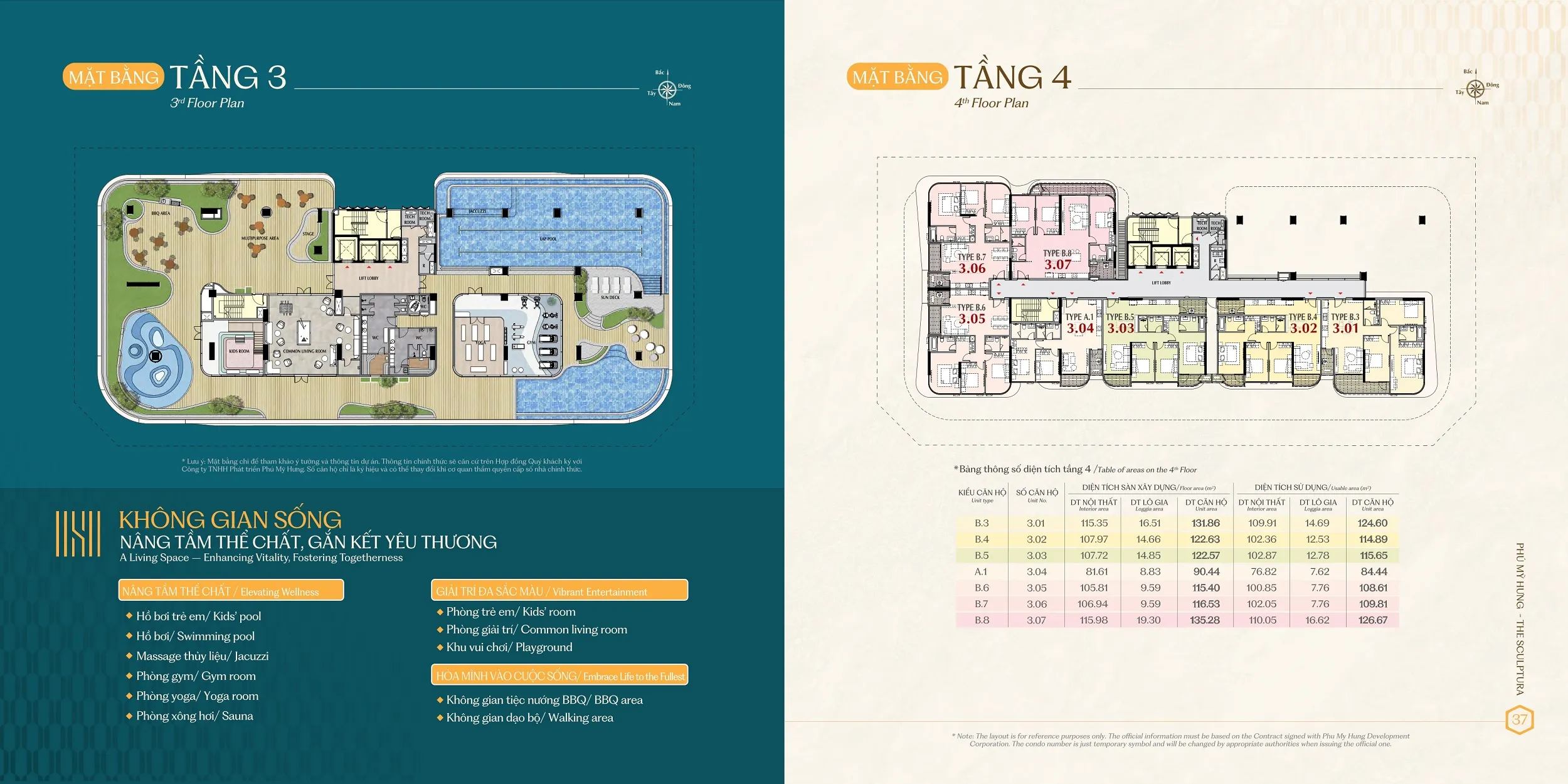 - Tiện ích nội khu: Hồ bơi nước mặn, phòng gym & yoga, phòng xông hơi (sauna), phòng game, khu vui chơi trẻ em trong nhà và ngoài trời, vườn thiền và khu thư giãn ngoài trời.