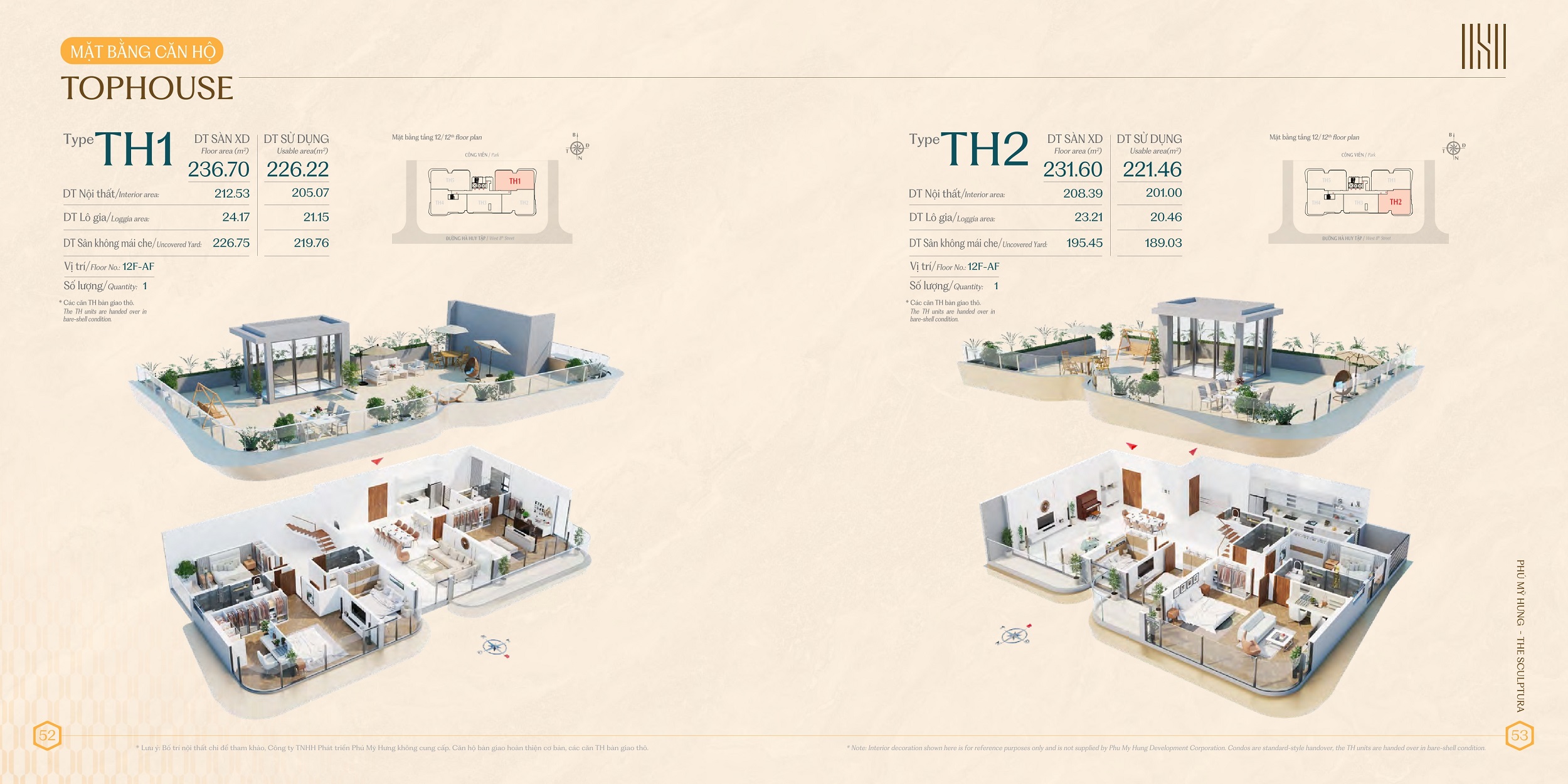 Căn hộ penthouse duplex với 221m2 và 226m2 cộng thêm 189m2 và 219m2 sân vườn